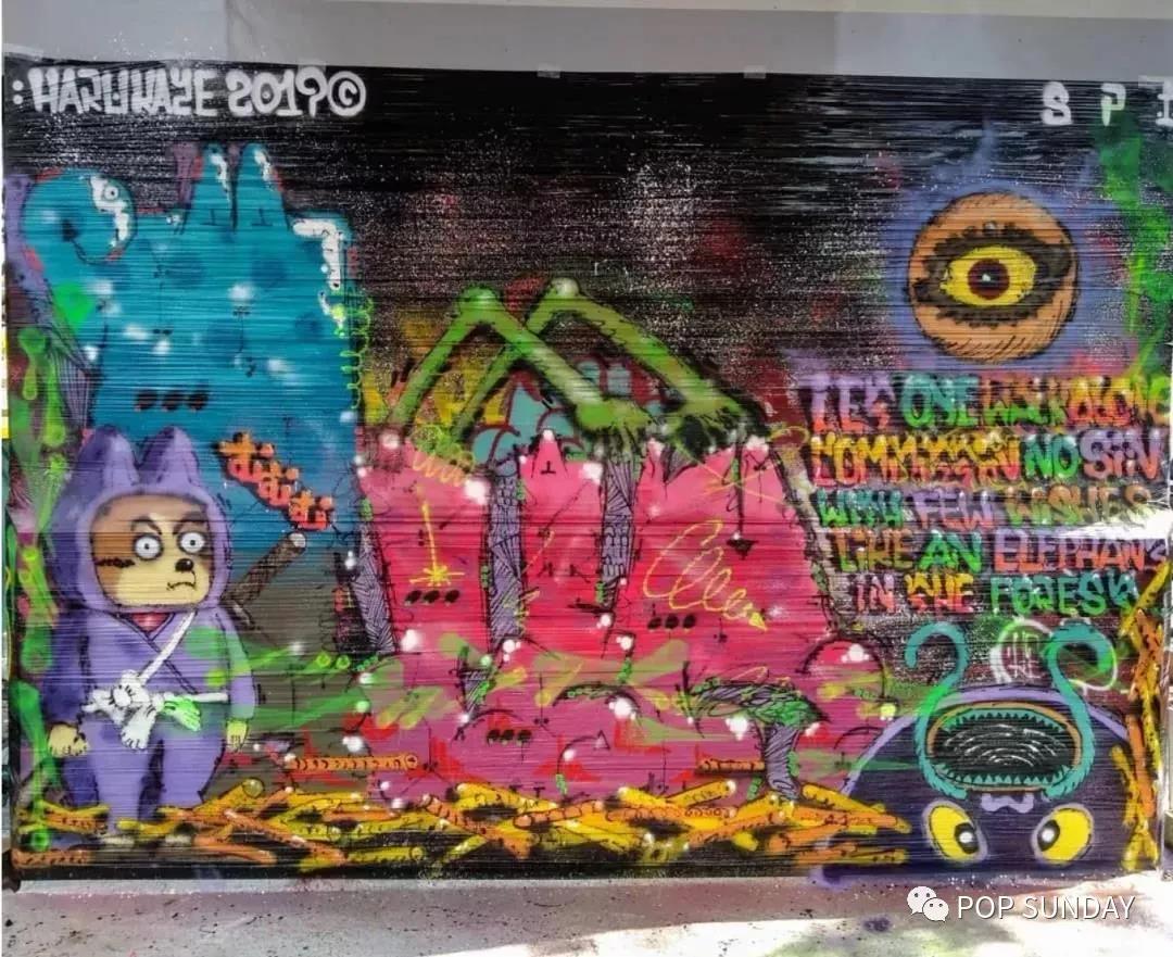 「Snipe1」是这位身材略微发福的日本大叔的其中一个艺名,他从少年时期就开始出道,先是在日本涂鸦街崭露头角。Snipe1年轻时去过很多国家,增广见闻、交流学习的同时也与各地的涂鸦团体建立了深厚友谊。