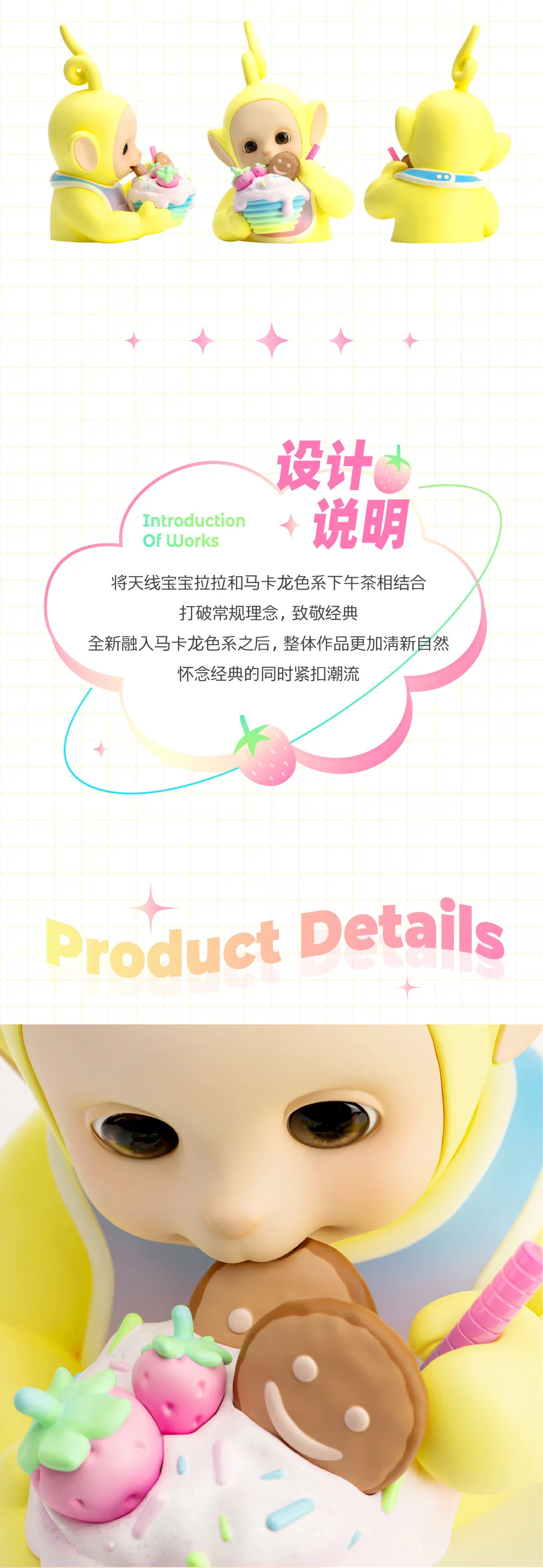 梦幻马卡龙配色,超萌动作搭配放大精彩细节的精致半身像。POP SUNDAY携手天线宝宝官方创意原创,天线宝宝下午茶系列带你开启甜甜的回忆!
