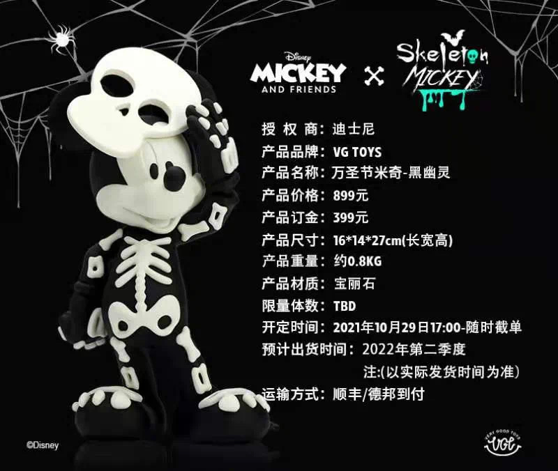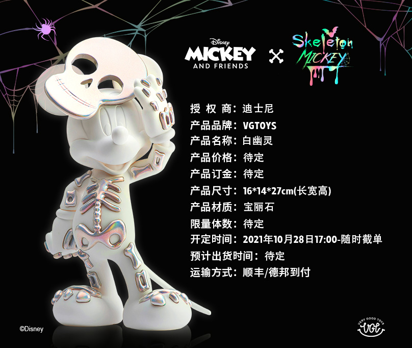 每年的万圣节人们会戴上各种面具去参与万圣派对,庆祝丰收的同时祭奠亡灵。今年万圣节将如期而至,VGTOYS此次将万圣节的骷髅元素和迪士尼经典动画形象米奇相结合,推出万圣限定黑白幽灵米奇。