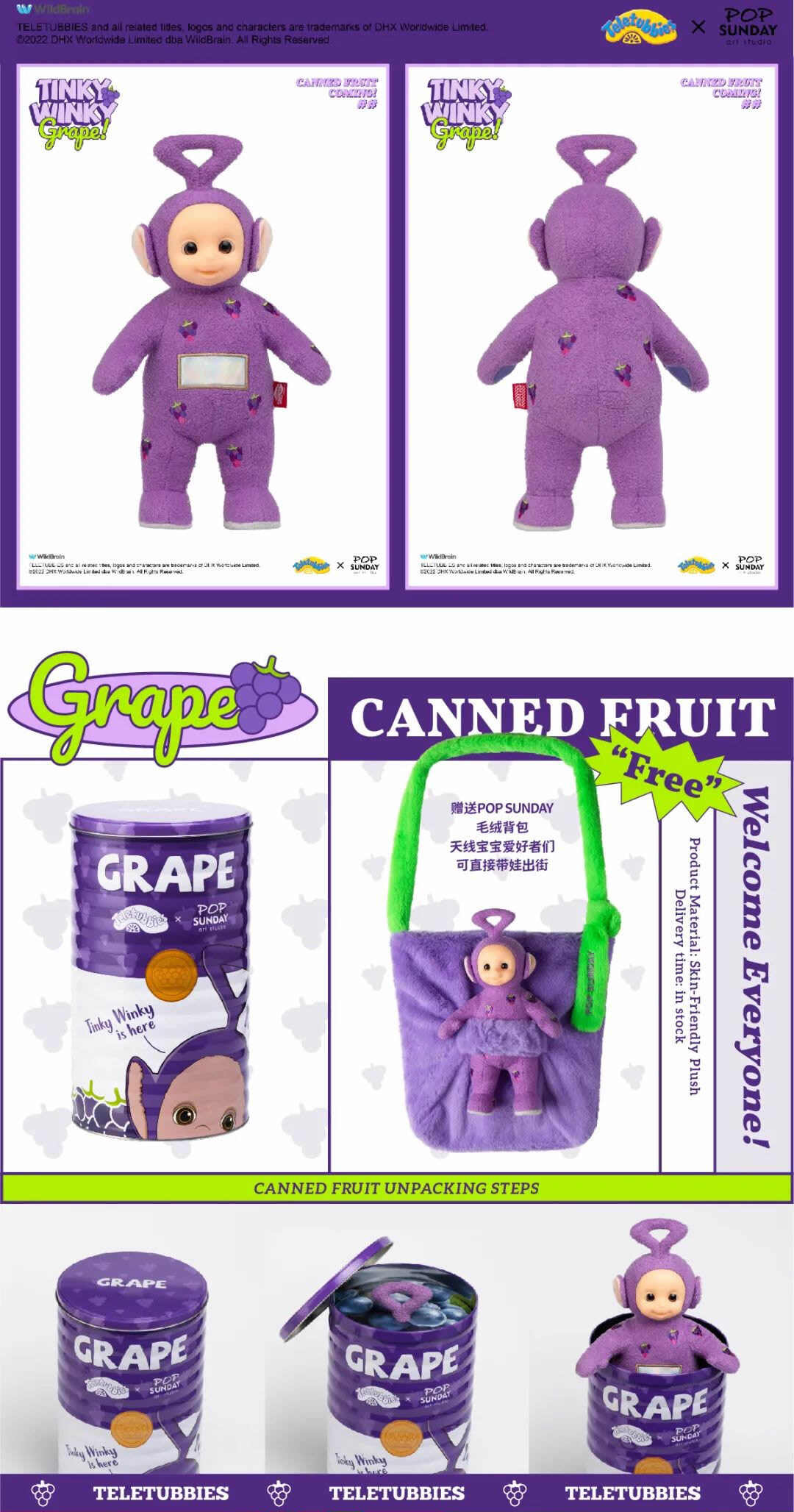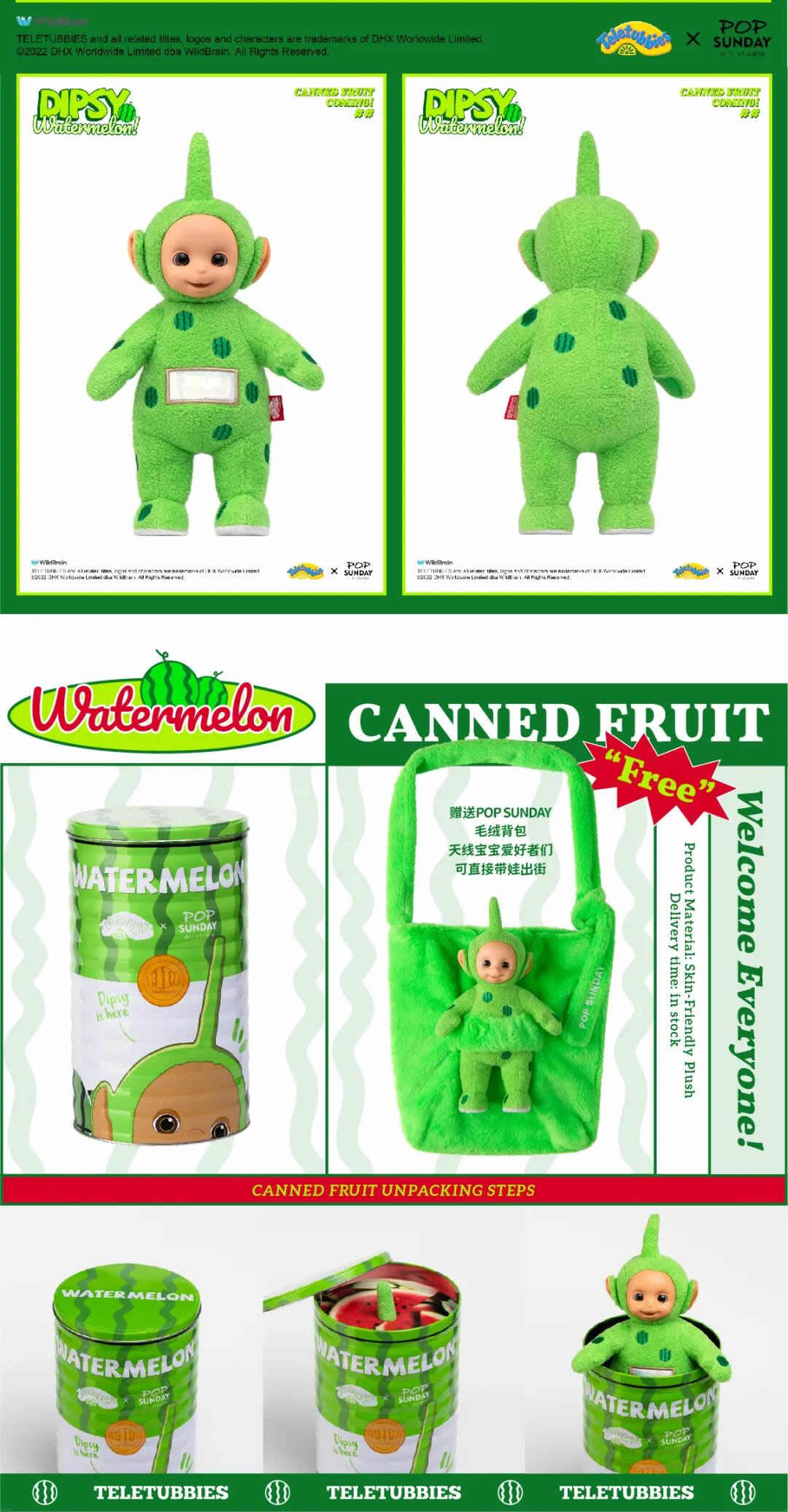 POP SUNDAY新品天线宝宝水果罐头,以每位天线宝宝色调联合水果为主题。