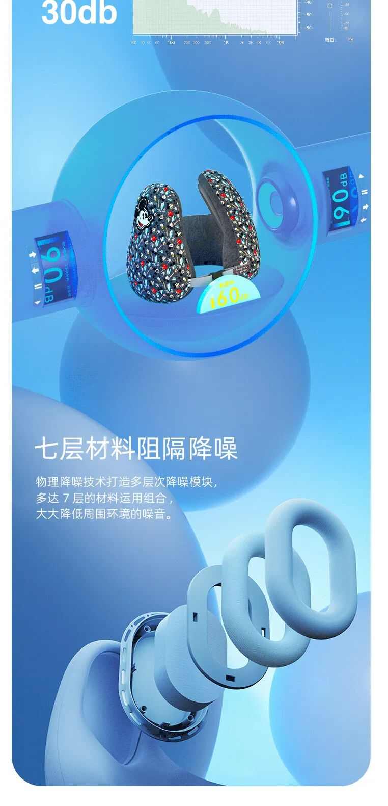 刺绣图案,立体精致;有效降噪,安静午睡;立体护颈,放松颈椎。
